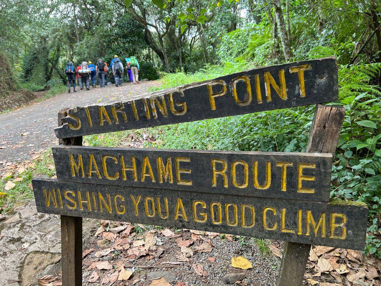 От Моши до места начала подъема Mount Kilimanjaro National Park Gates, ехать около 50 минут. Дорога лежит через деревушку Мачаме на склонах Килиманджаро. Как только мы прибываем на место начало восхождения все участники должны еще раз проверить свою готовность к восхождению. Здесь мы встречаемся с нашими помощниками, которые на протяжении всего восхождения будут нести вещи и припасы. Здесь мы еще раз проверяем содержимое наших походных рюкзаков, так как носильщики уходят очень быстро вперед. Гиды-сопровождающие ответят на все возникшие у нас вопросы, и только после этого мы отправляемся в наш нелегкий, но захватывающий путь. Мы идем сквозь тропический лес по извилистой дороге. На высоте 2890 м. мы достигаем Machame Hut, горный приют и располагаемся лагерем, наслаждаемся отдыхом, ужином, общением и устраиваемся на ночлег.
